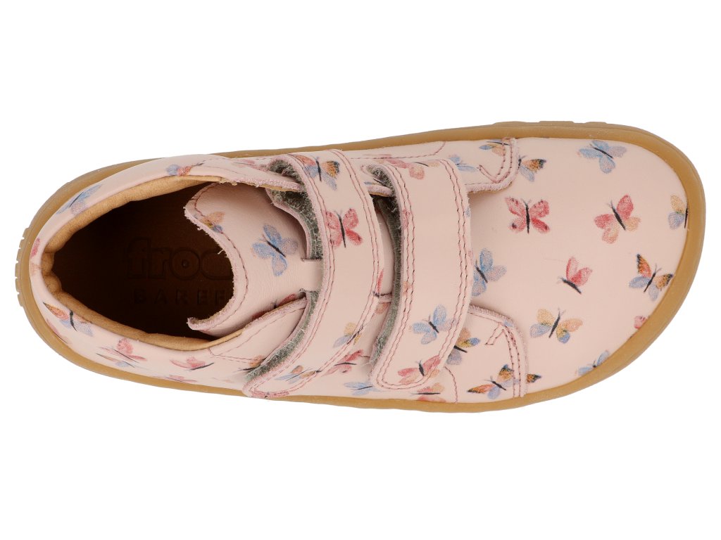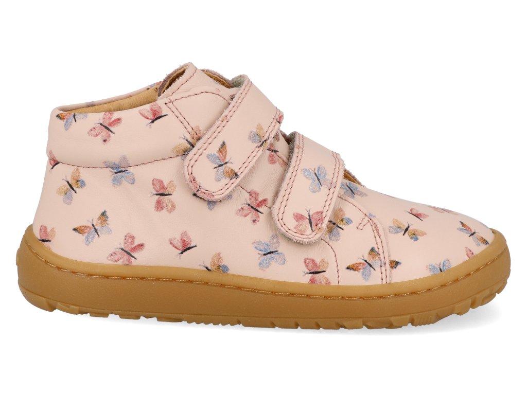 Barefoot dětské kotníkové boty Froddo - First step Pink+ motýlci růžové