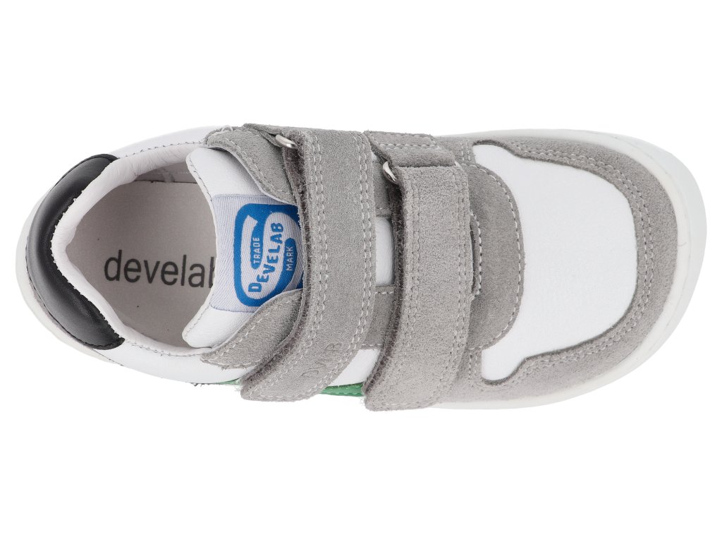 Barefoot dětské tenisky Develab - Firststep Sneaker 2Velcro Grey combi suede bílo-šedé