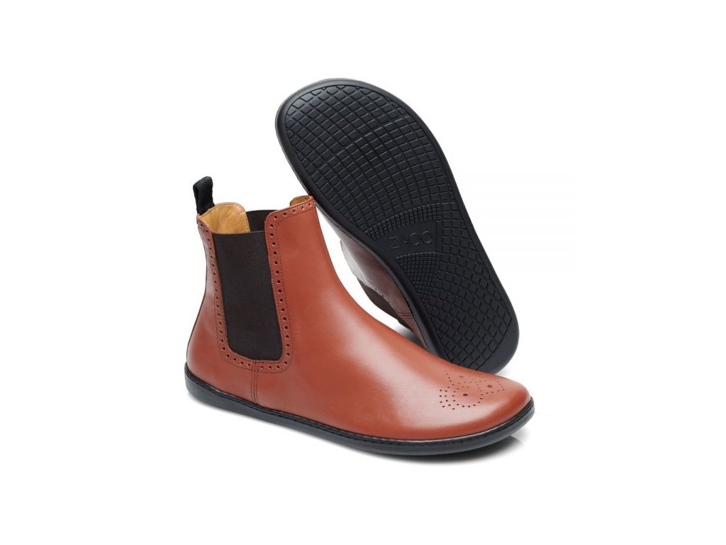 Barefoot dámské kotníkové boty Zaqq - Equity brogue chelsea hnědé