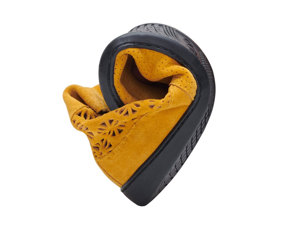 Podešev je tenká a flexibilní a je ručně přišitá ke zbytku obuvi. Má protiskluzový dezén.