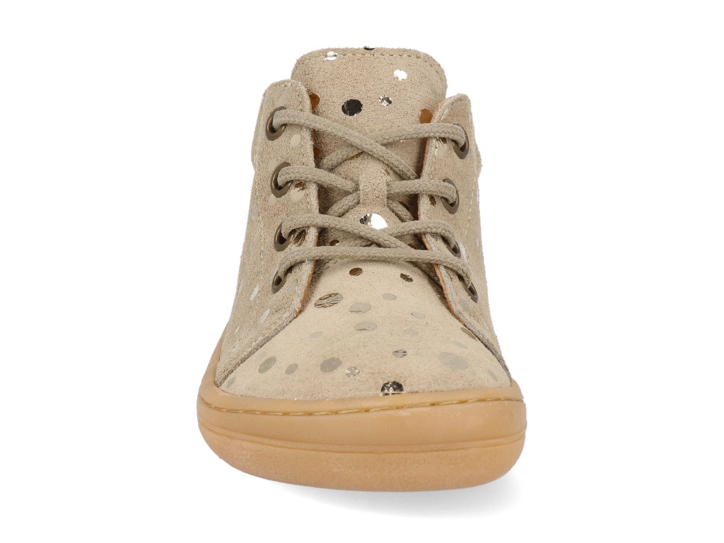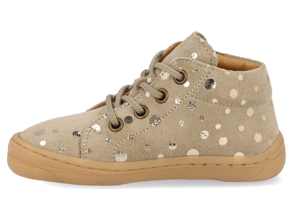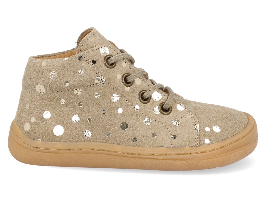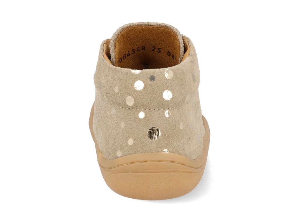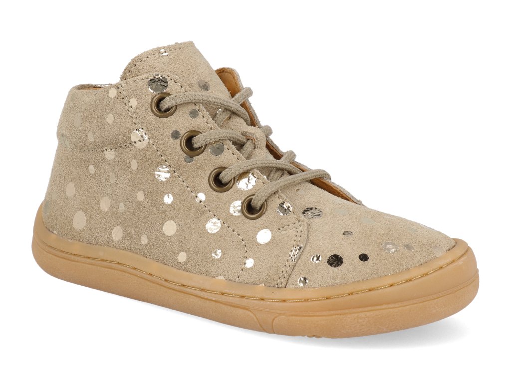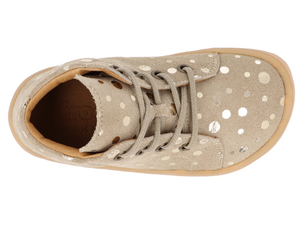 Barefoot dětské kotníkové boty Froddo - First Step Laces béžové třpytky