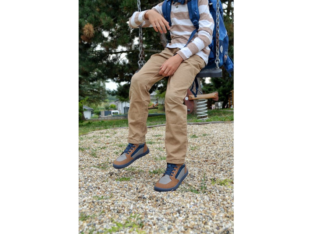 Barefoot dětské kotníkové boty Protetika - Navaro hnědé