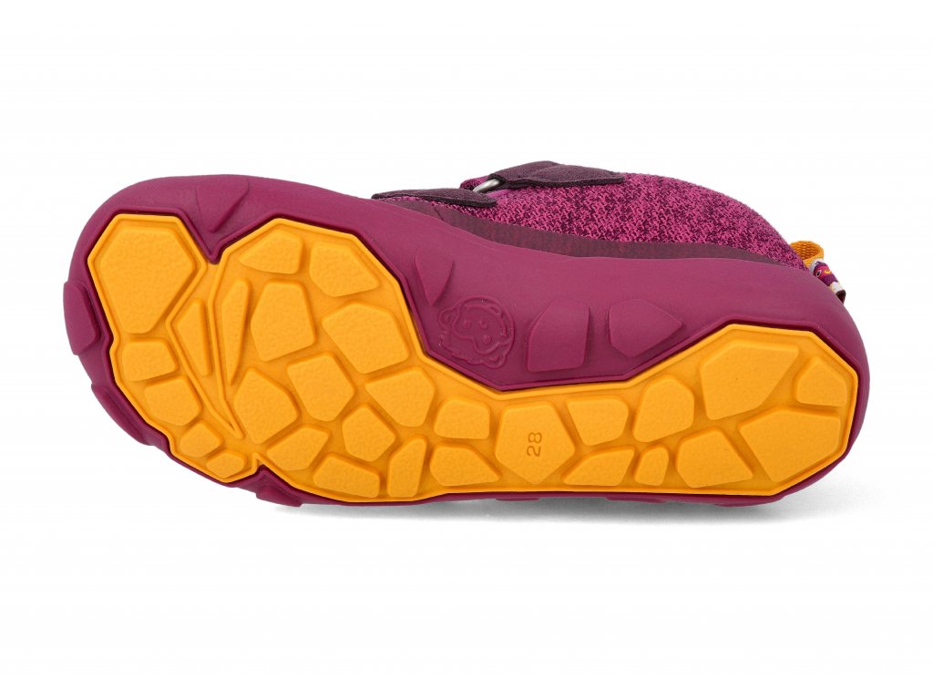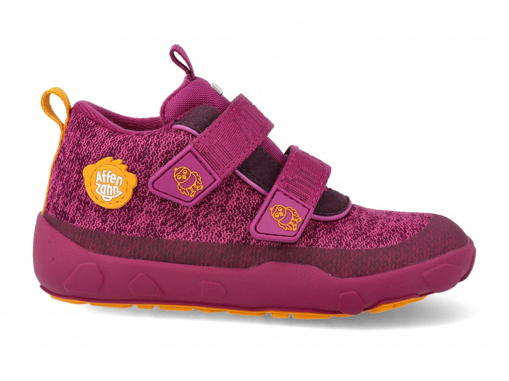 Barefoot dětské kotníkové boty Affenzahn - Minimal Lowboot Knit Happy Bird vínové