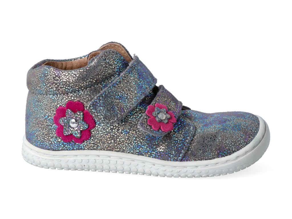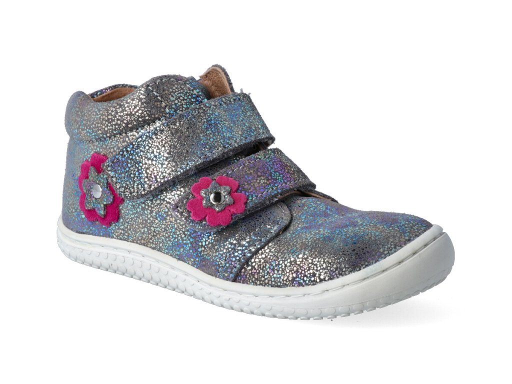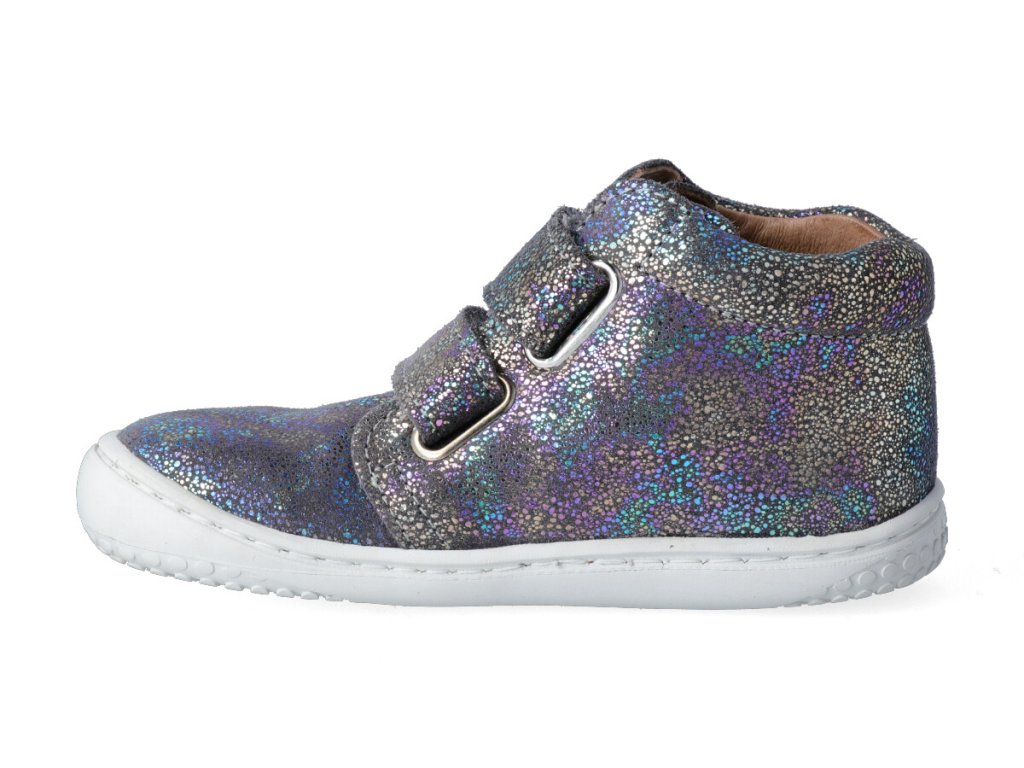 Kotníková barefoot obuv Filii - CHAMELEON velcro velours glitter graphit M