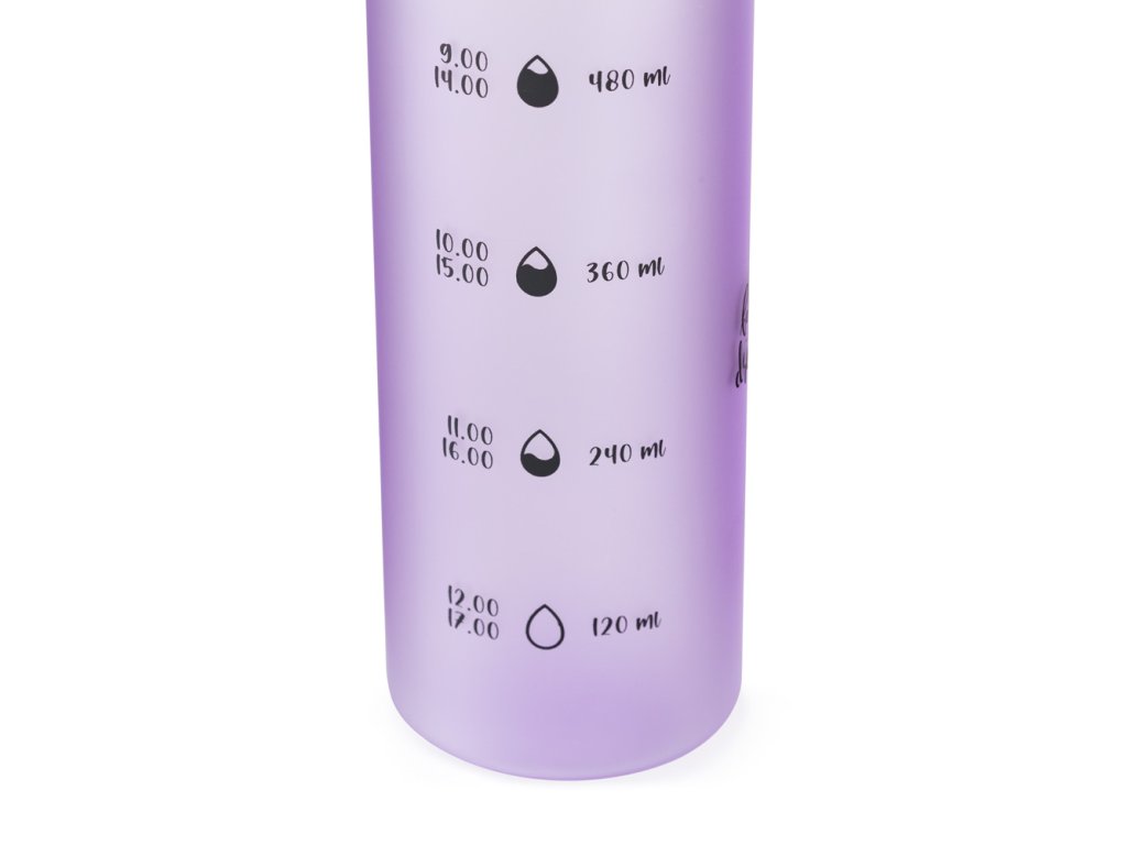 - na zadní straně láhve nalezneme škálu k pitnému režimu, která dopomáhá ke zdravému životnímu stylu