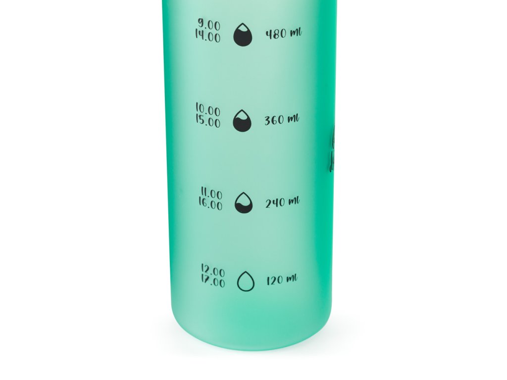 - na zadní straně láhve nalezneme škálu k pitnému režimu, která dopomáhá ke zdravému životnímu stylu