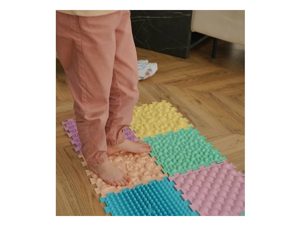 Ortopedická masážní podložka je skvělým pomocníkem pro zdravý vývoj chodidel i každodenní relaxaci. Skládá se z 8 puzzle dílů, které lze snadno kombinovat podle potřeby. Podložka slouží k masáži, posilování a stimulaci chodidel, čímž podporuje správné držení nohy a pomáhá při prevenci plochých nohou i dalších deformit. Různorodé povrchy, od měkkých po tvrdší či strukturované, aktivují svaly chodidla a zároveň přispívají k rozvoji jemné motoriky a vnímání. Pravidelné používání pomáhá snižovat únavu nohou, otoky i pocit těžkých nohou po dlouhém dni. Podložka se snadno udržuje, stačí ji opláchnout studenou vodou a nechat uschnout na rovném povrchu.