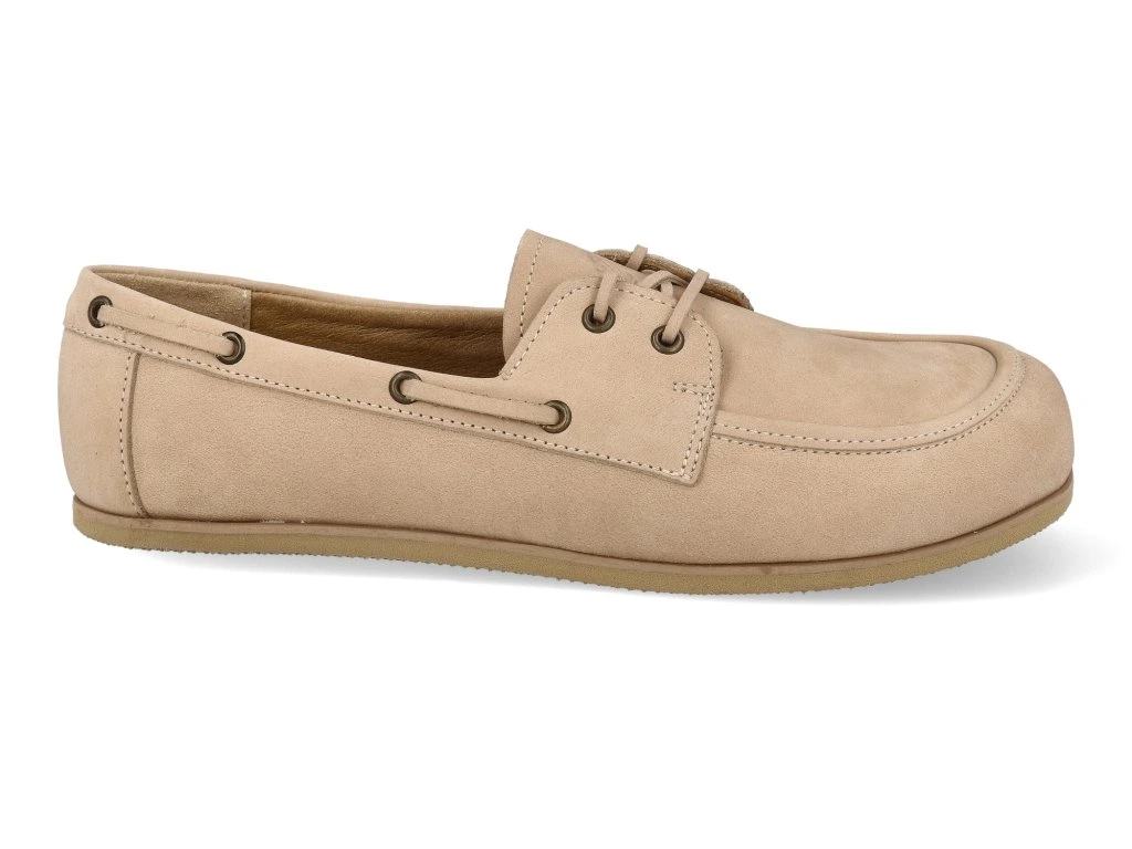 Mokasíny Peerko Tala spojují elegantní vzhled, pohodlí a přirozený pohyb. Jsou vyrobeny z kvalitní broušené kůže, která působí jemně, stylově a dodává botám nadčasový charakter. Díky barefoot podrážce z materiálu EVA si užijete lehký a přirozený krok bez omezení. Konstrukce boty nabízí dostatek prostoru pro prsty a podporuje zdravý pohyb chodidla během celého dne. Kožené šňůrky v nártu umožňují jemné nastavení a přizpůsobení boty podle tvaru chodidla, což zvyšuje pohodlí i stabilitu při nošení. Peerko Tala jsou ideální volbou pro každodenní nošení, do města, do práce i na chvíle, kdy chcete spojit pohodlí s elegantním stylem.