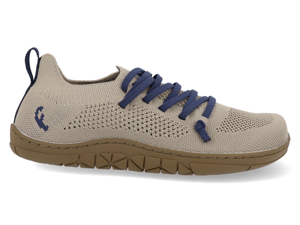 Freet Keld 2 jsou dětské barefoot tenisky navržené pro celodenní pohodlí, volný pohyb a spolehlivou odolnost. Svršek tvoří prodyšná a pevná síťovina, která účinně odvádí vlhkost a udržuje dětské nožky v suchu i při aktivním hraní. Materiál je navíc vyroben z recyklovaných plastových lahví, takže boty nejen dobře slouží, ale také šetří životní prostředí. Plně flexibilní podrážka podporuje přirozený barefoot krok, dovoluje chodidlu volně pracovat a poskytuje skvělý kontakt se zemí. Široká špička zajišťuje prostor pro prsty, které se mohou přirozeně rozvíjet, aniž by byly stlačované. Díky snadnému zapínání a lehké konstrukci jsou Keld 2 ideální na každodenní nošení na hřiště nebo do přírody.