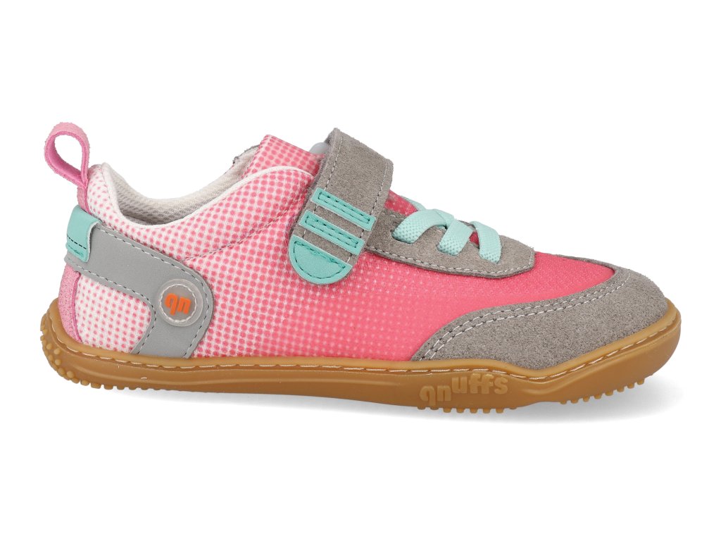 Barefoot dětské tenisky Qnuffs - Fichte hellgrau fleur Micro Camper šedo-růžové