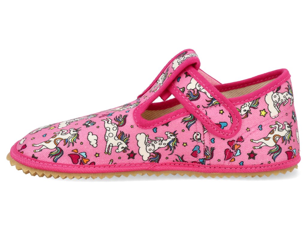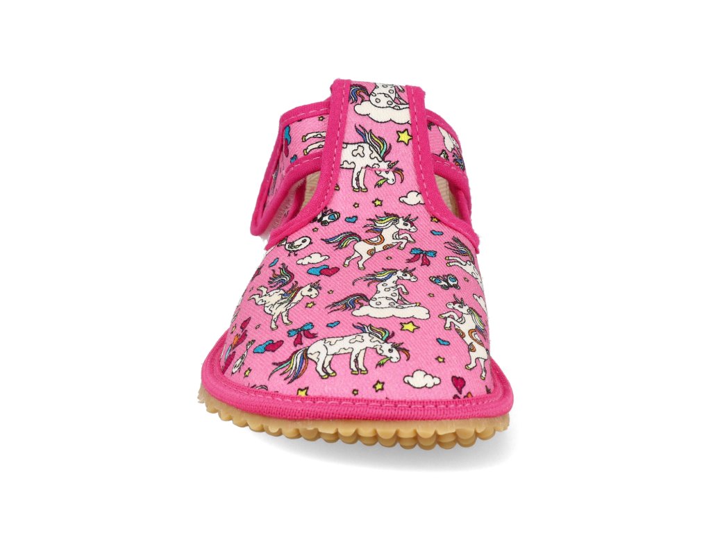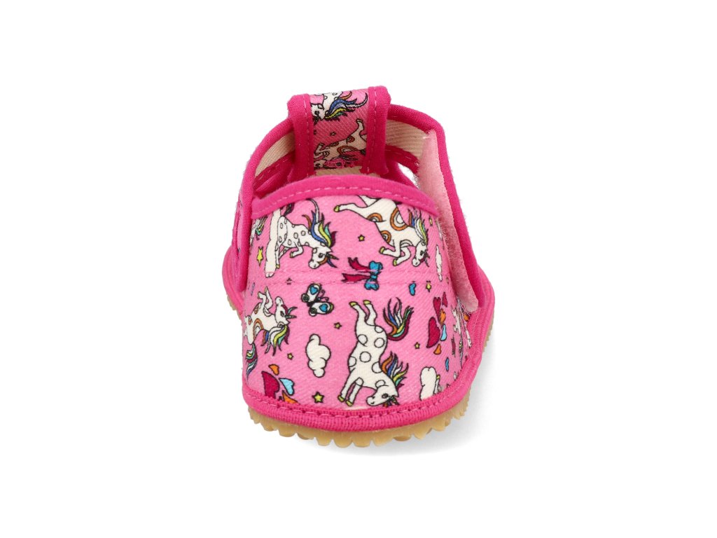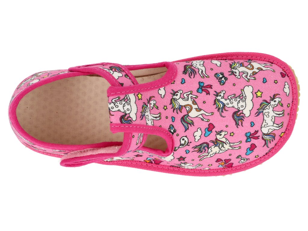 Barefoot dětské přezůvky Beda - Playful BFN Crazy unicorn růžové