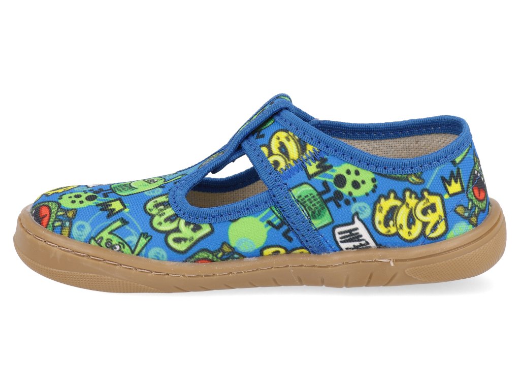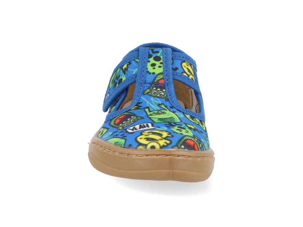 Barefoot dětské přezůvky Milami - Light blue roboti