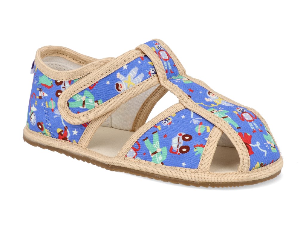 Barefoot dětské přezůvky Milash - Robot uzavřené modré