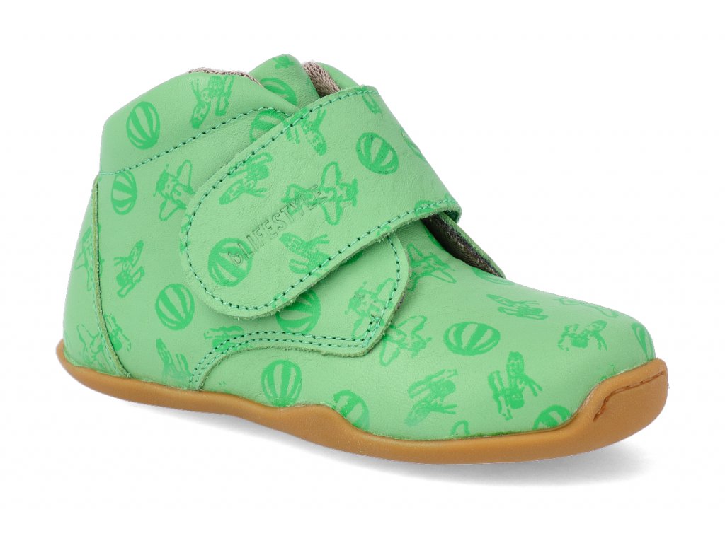 Barefoot kotníková obuv Blifestyle - babyRaccoon Bio-Nappa Apfelgrün Print zelená
