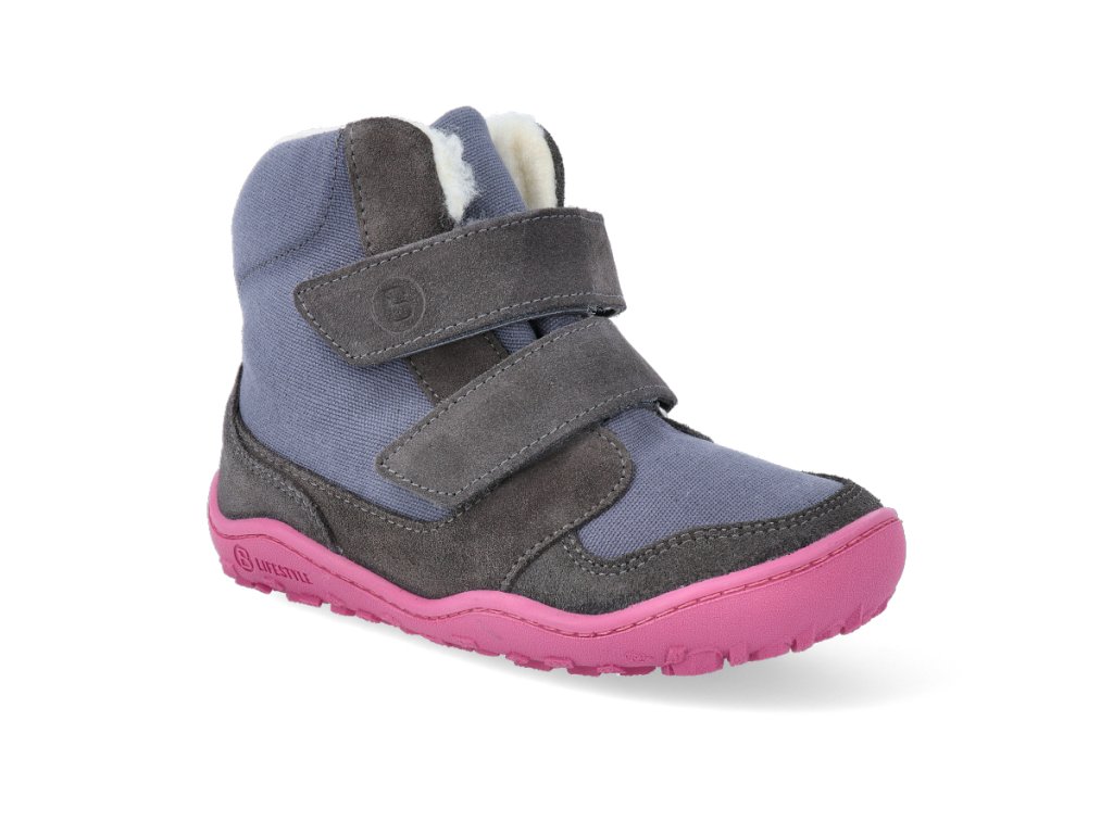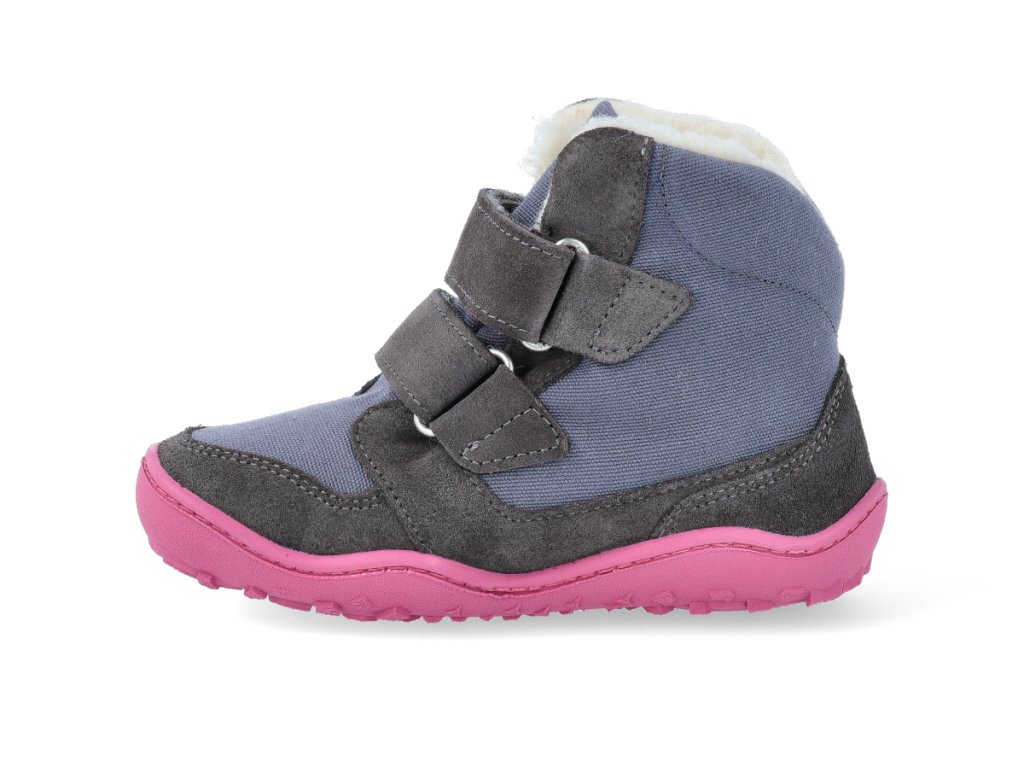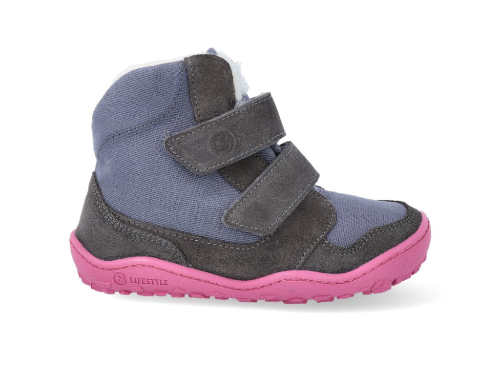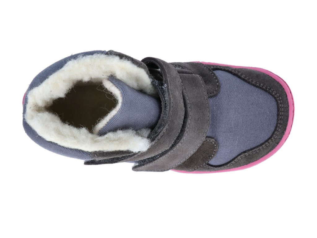 Barefoot zimní obuv s membránou bLIFESTYLE - Eisbär wool velcro Grey/pink