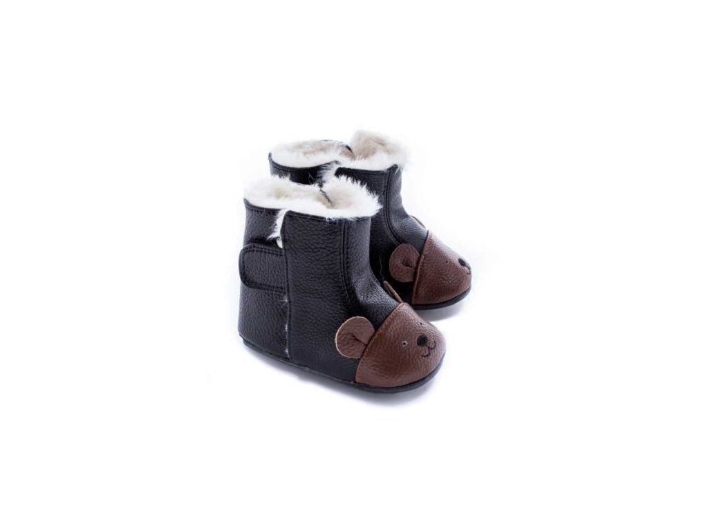 Ručně vyráběné zimní botky pro batolata nebo začínající chodce z prvotřídních materiálů.Svršek boty tvoří kvalitní eko-kůže, uvnitř boty je extra jemný antialergenní kožíšek, díky kterému budou botky hřát celou zimu.